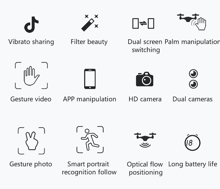 The Tactic AIR Drone features dual cameras that can be used and viewed simultaneously or independently. Complimenting the advanced features of the drone, the integrated upper and lower 4K HD cameras are combined with an advanced photography mobile APP. The APP enables the user to control the drone as well as the camera functions.